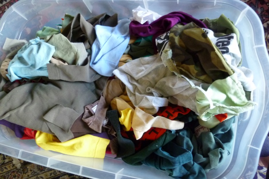 A creative urge…..A pile of t-shirt remnants…….A desire for challenge…….Let the games begin!