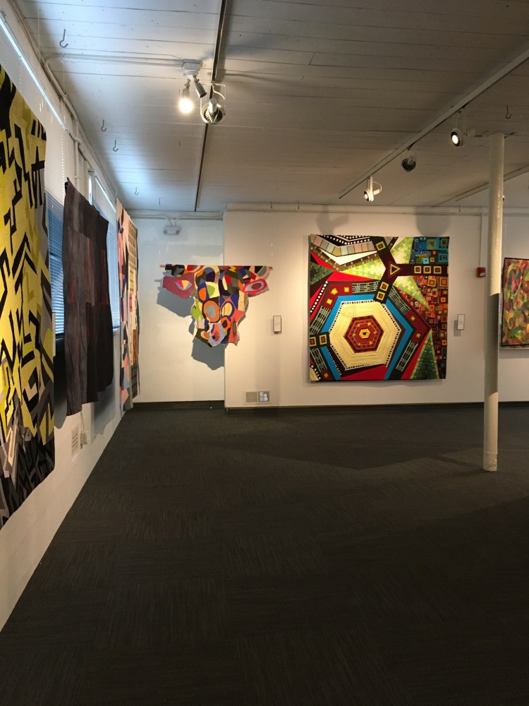Rasiel’s Mantle; 43”H X 63”W X 2” D; Machine Pieced and Hand Quilted Tee-Shirt Remnants, Old Quilt Remnant. 07/2016. $1600.00. Quilt National 2017.