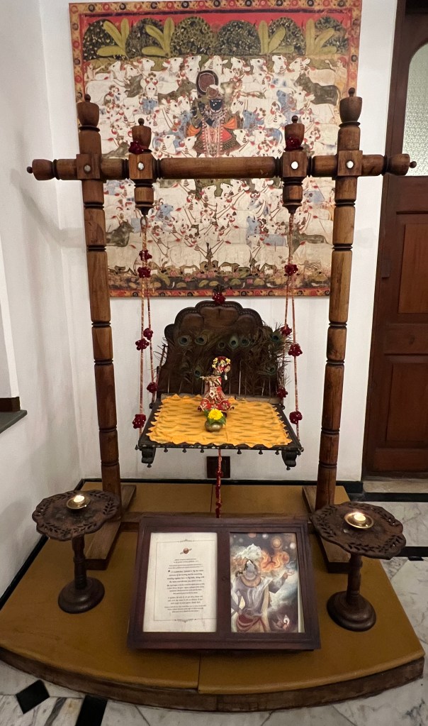 Alters & shrines adorned with flowers, incense, and other offerings are everywhere. It’s like the impromptu memorials we create along the roadside for loved ones, but much more elaborate, permanent, and in this case, dedicated to deities. This one in our hotel, honors Krishna, the embodiment of divine love & joy, destroyer of all pain & sins. Krishna is the main hero in the epic, Bhagavad Gita.