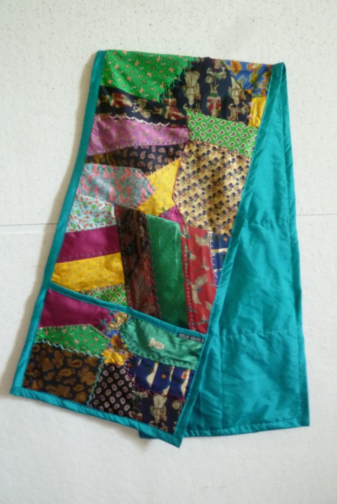 Louise, of course we bring people into the music room when the sun hits it in late afternoon, and your quilt glows like Chartres. But it’s 5:21 a.m. now, no light at all, and the quilt is equally wonderful and comforting. Thanks for your great gift to us. –FT
