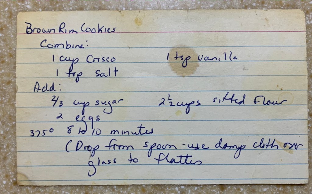Add: 5 eggs and beat Add: 3 Cups unsifted flour 1 tsp. baking powder ½ tsp. salt 1 tsp. almond flavor 1 tsp. vanilla 1 Cup almonds Form into 2 smooth logs on a cookie sheet. Bake at 375degrees for 20-30 minutes. Remove from oven, slice, turn slices onto side. Bake 10-15 minutes. Turn off the oven and leave the slices in the oven until it cools.